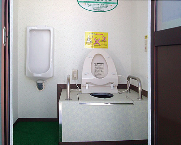 空気の流れとオガクズ効果によって、トイレ室内は無臭です。
