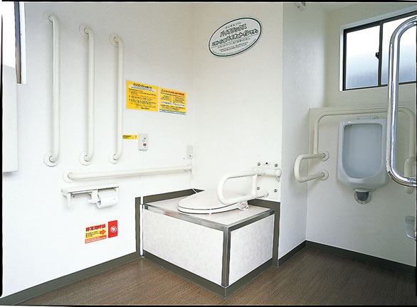ユニバーサルデザインに配慮した多目的バイオトイレです。