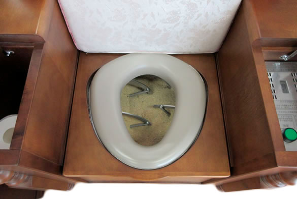 バイオトイレBio-Luxは水を使わずオガクズでし尿を処理する「自己完結型の新型トイレ」です。