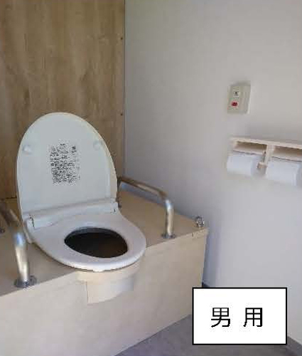 本製品は水を使わずオガクズで小便や大便、トイレットペーパーを分解処理する新型トイレです。