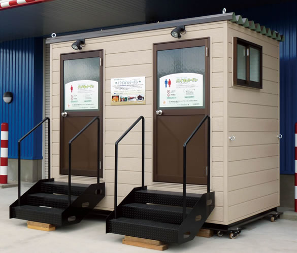 外装がサイディング仕様のあらゆる場所での設置に対応できる仮設トイレです。
