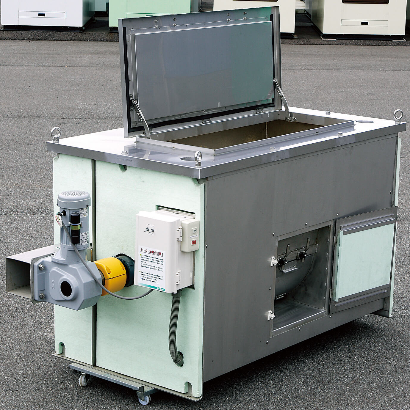 バイオトイレの技術を応用した業務用の生ごみ処理機です。